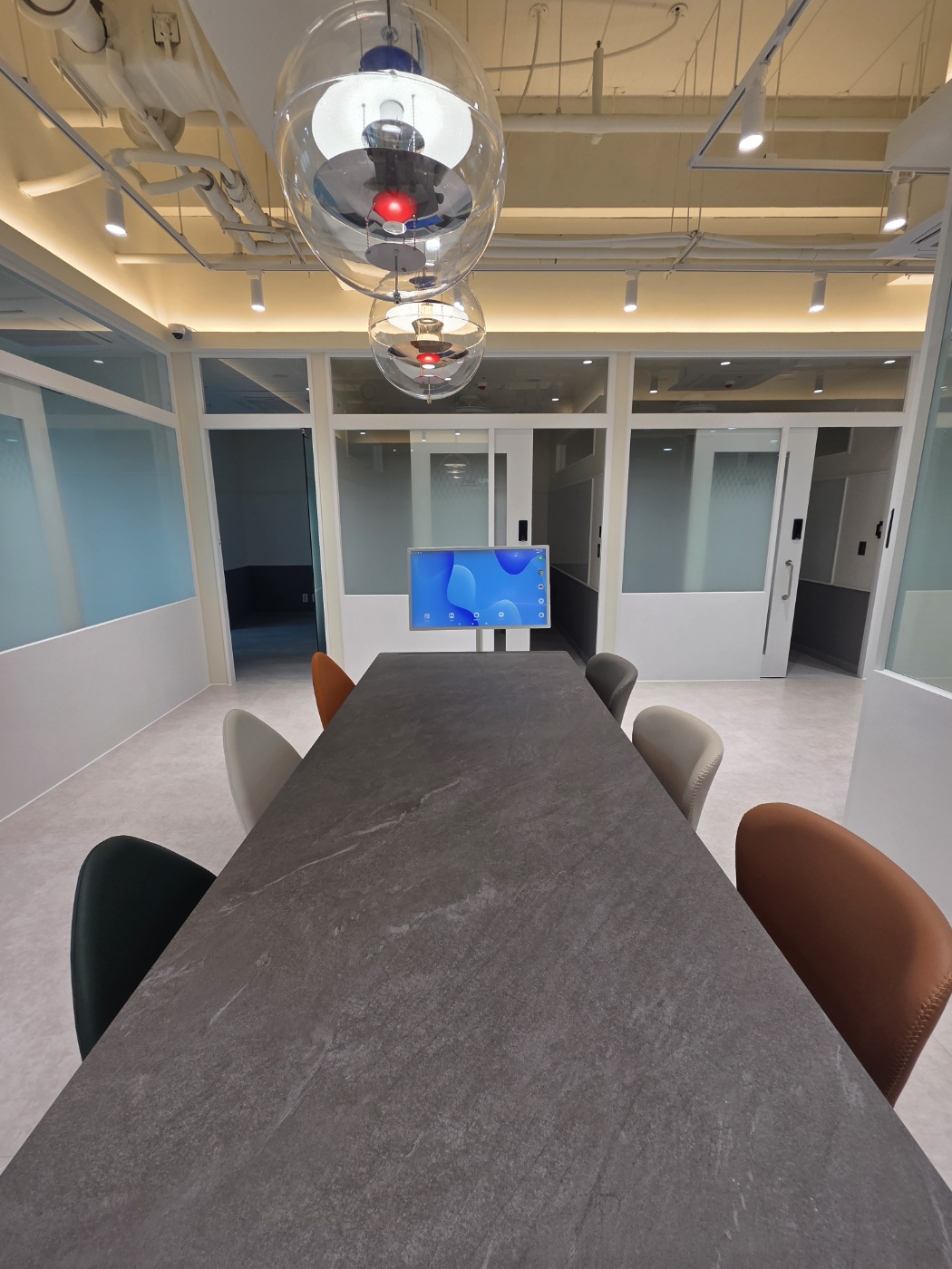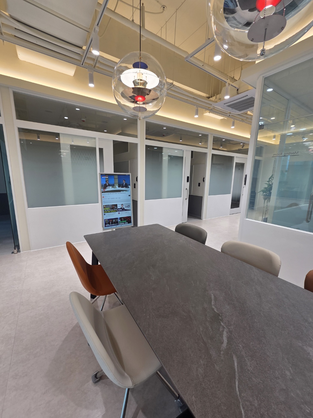 사무실 문이 슬라이딩 도어라서 완벽하게 프라이빗한 공간이 되구요, 방 안에 글라스보드, 자석칠판등이 기본 설치되어 있어서 업무 하기에 너무 편해요.